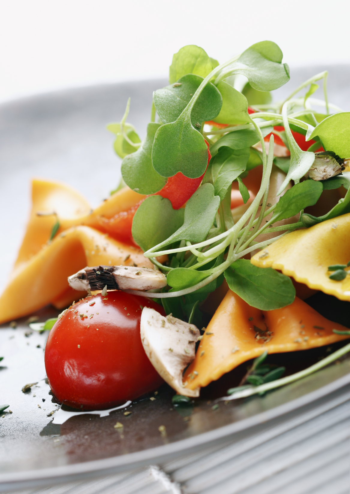 pasta salad with tomato,rocca,mushrooms,herbs