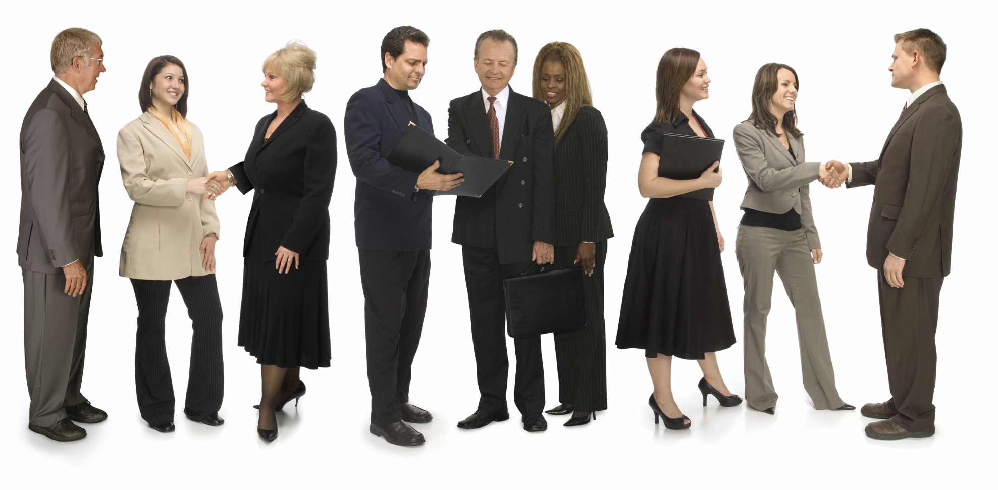 Group of corporate business people networking on a white background