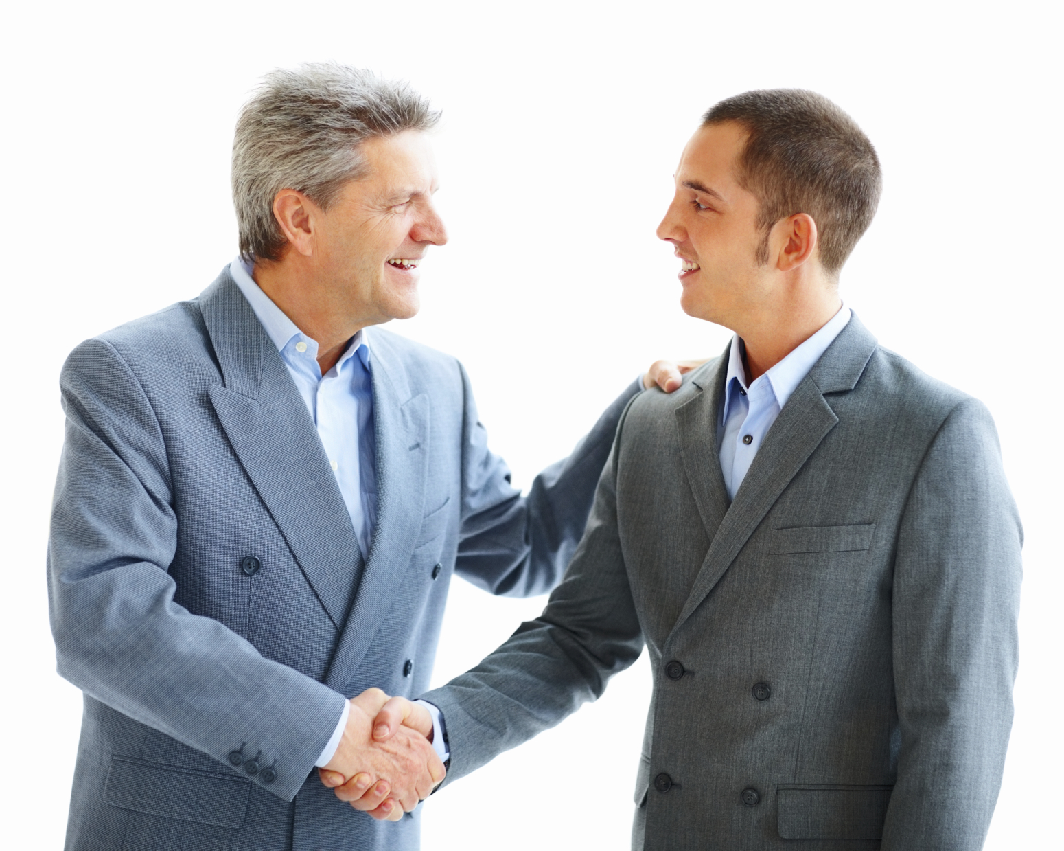 Portrait of business men shaking hands over white background