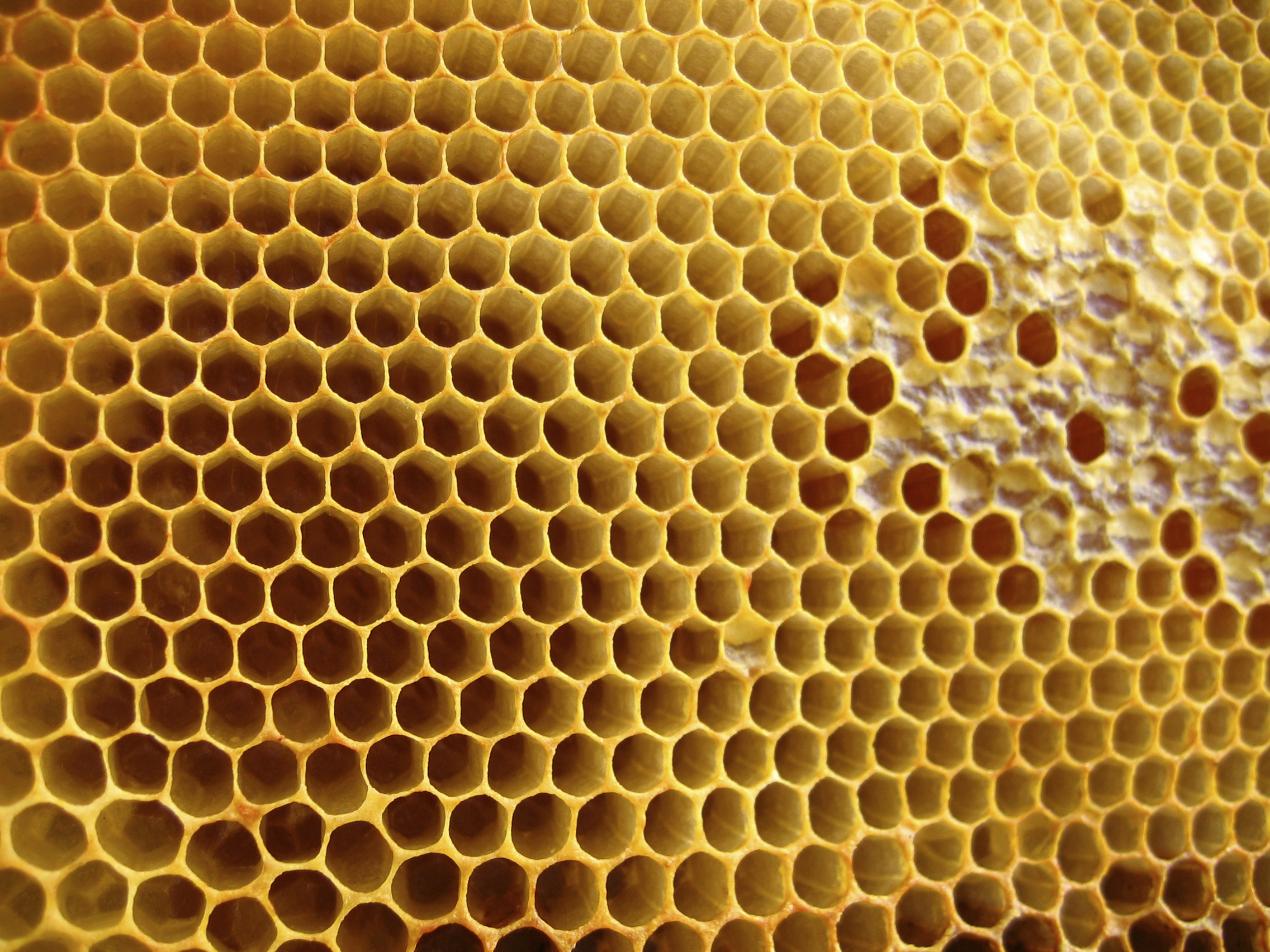 empty honeycomb shapes are visible in the left part. on the right there are full cells with honey
