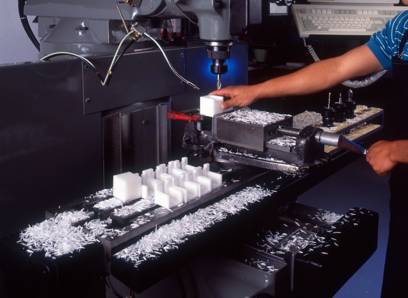 Industrial photograph of plastic manufacturing with a male machine operator.