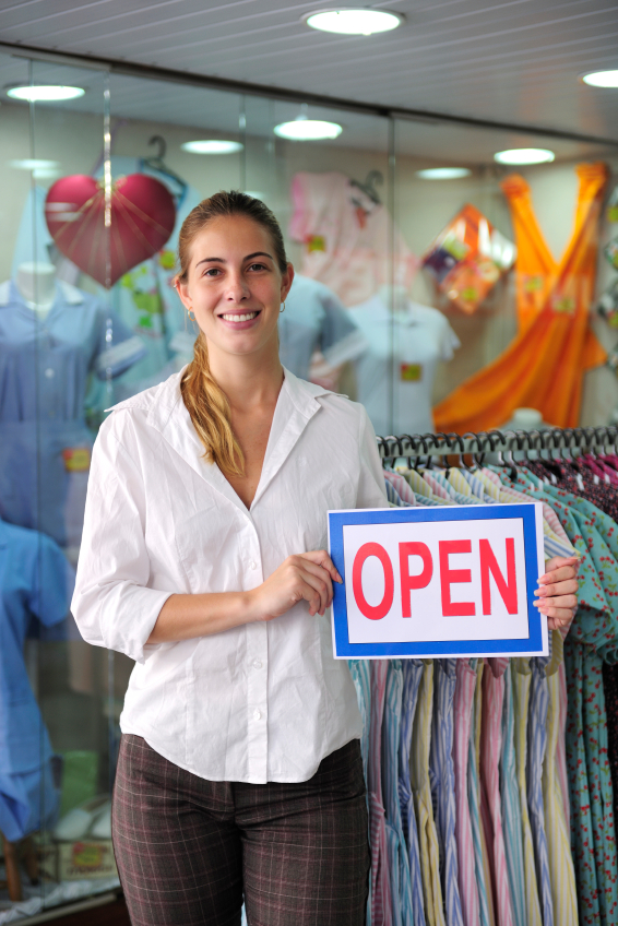 retail business: proud store owner with open sign