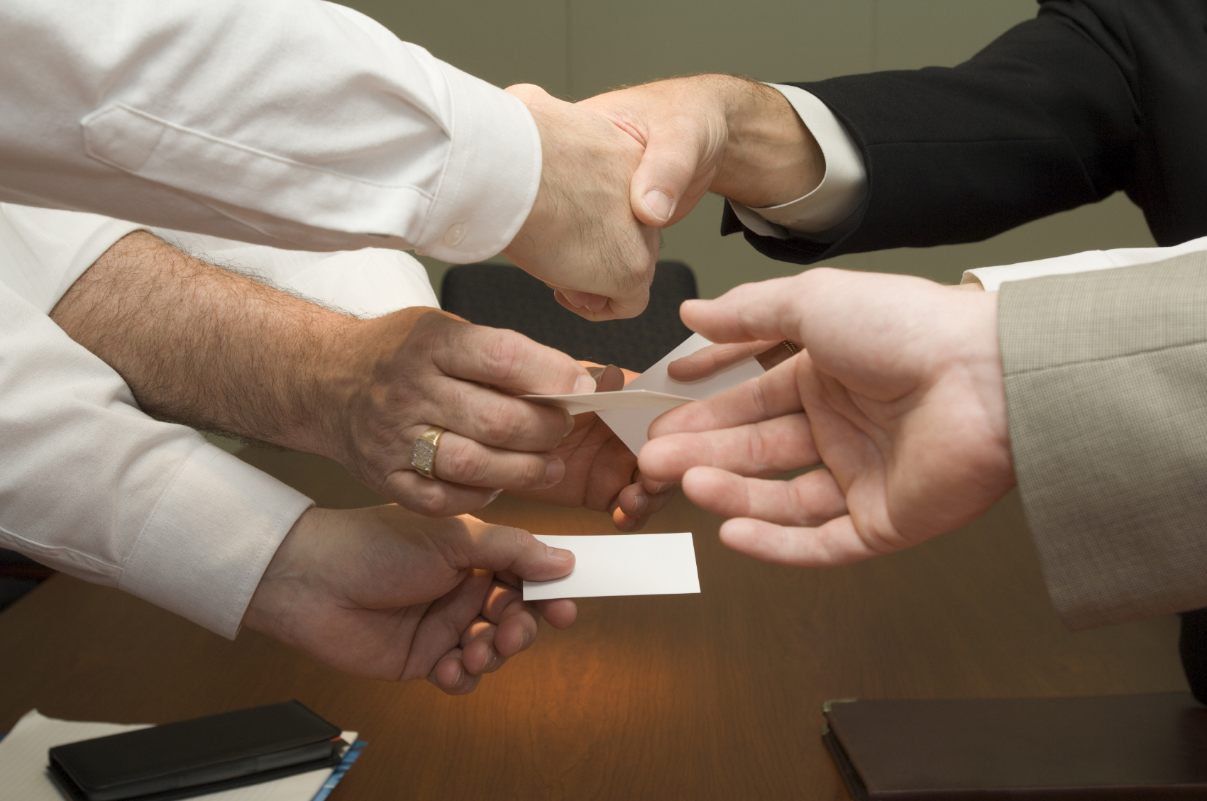 A group of people with a business card exchange.