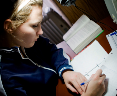 Female college student doing her homework