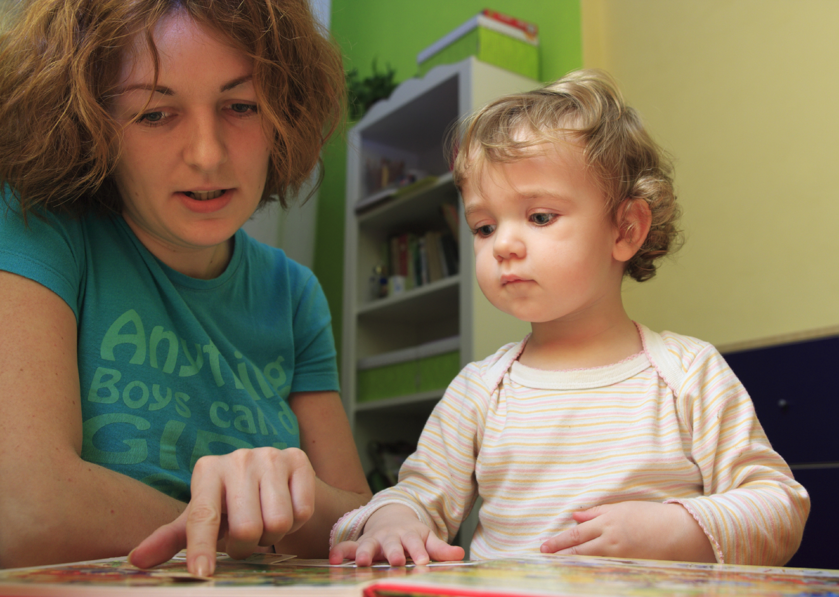 A mother is teaching her child.