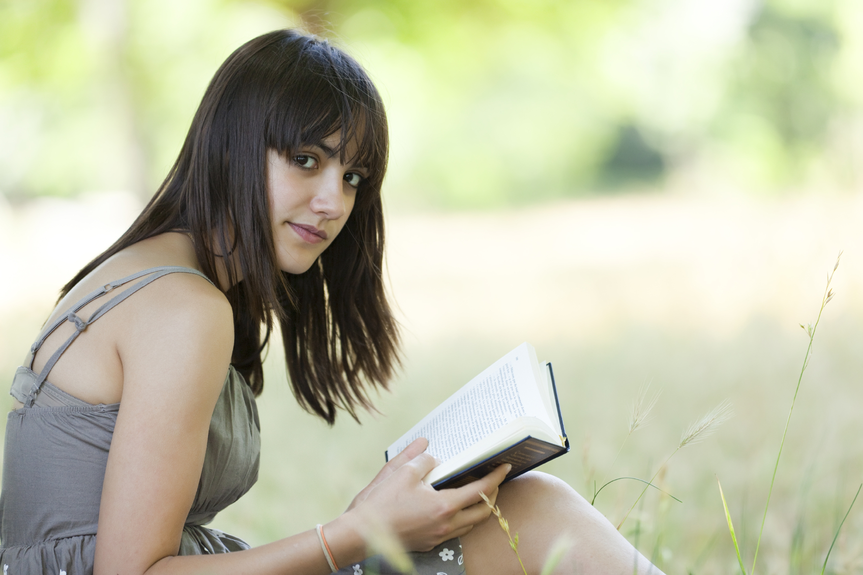 teen girl reading book sitting in fresh meadow