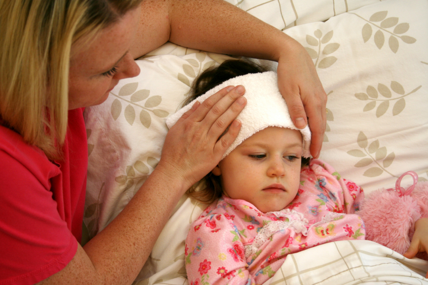 mother taking care of sick child