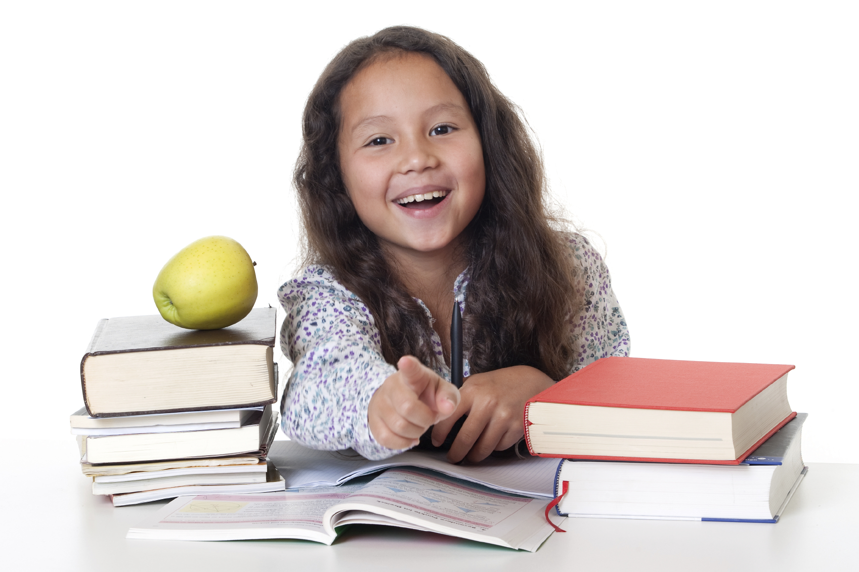 School, child makes the homework and learns before white background