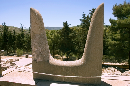 Sacred horns of Knossos Palace site in Crete Island, Greece
