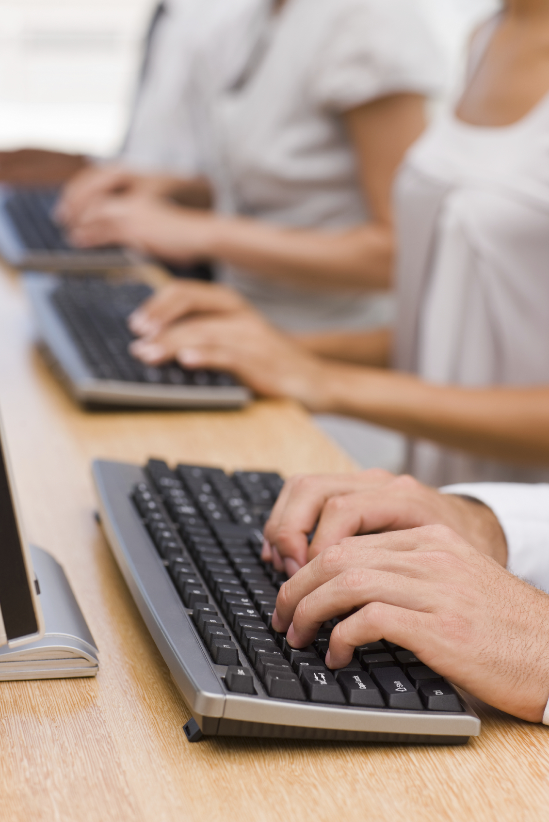 Closeup of business executives using wireless keyboards