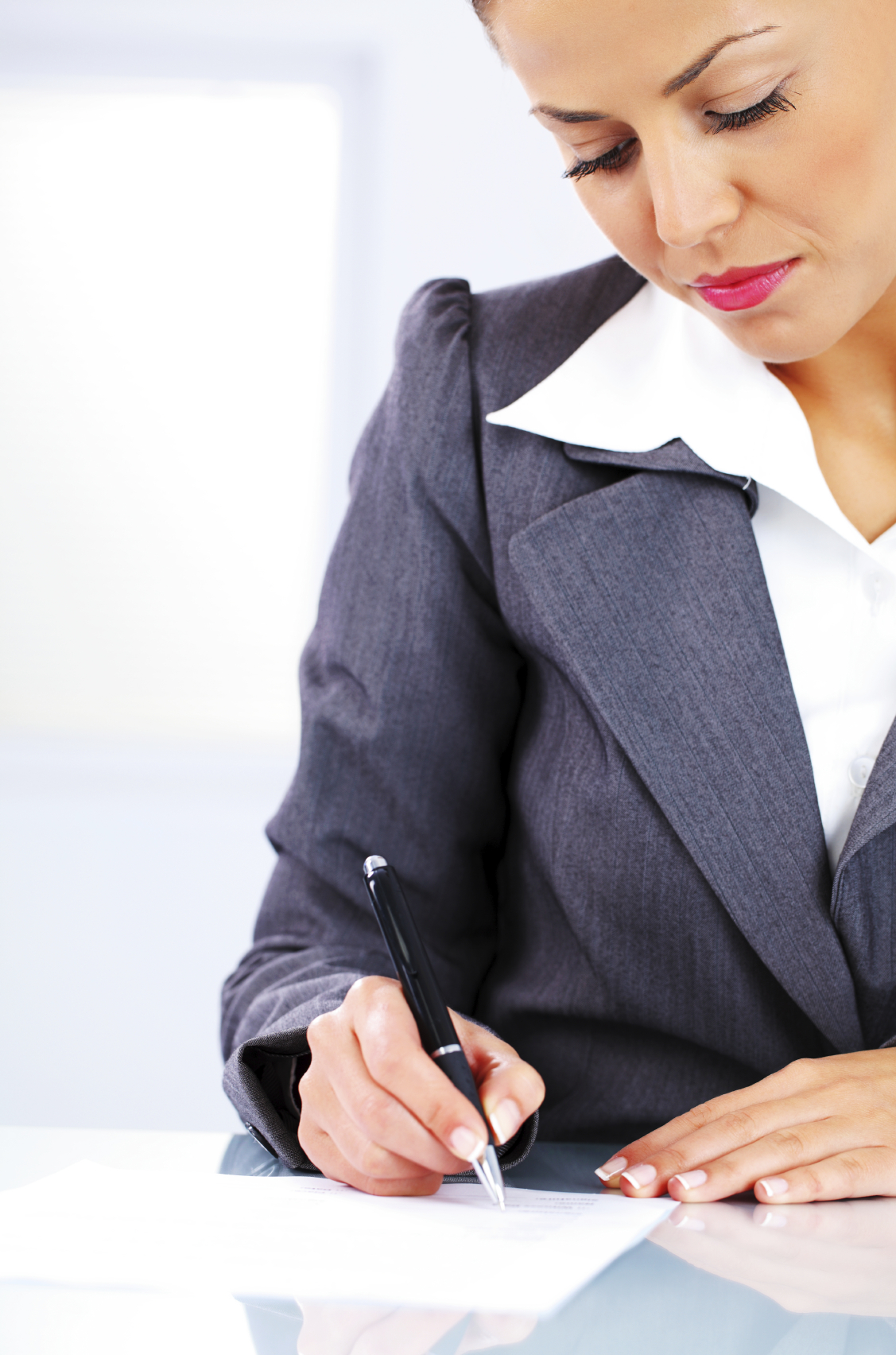 Contemporary young business woman signing a contract.