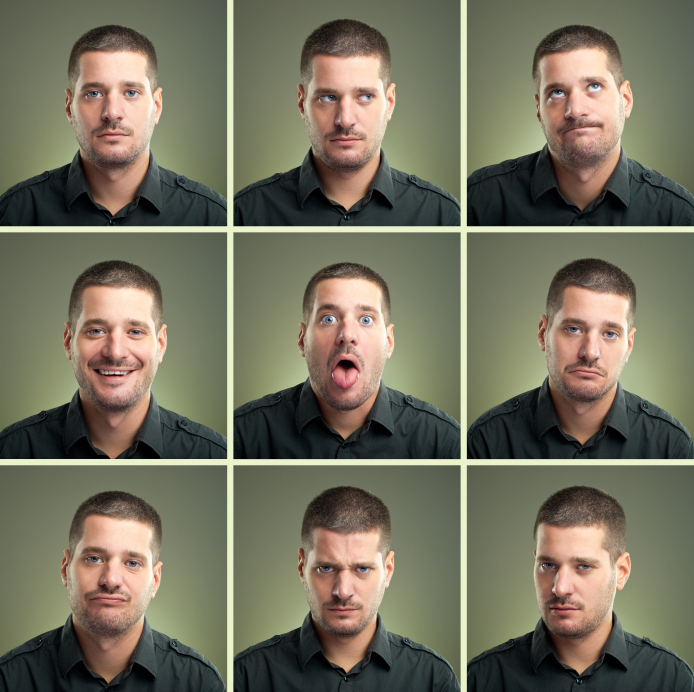 Young man portraits expressing different emotional states