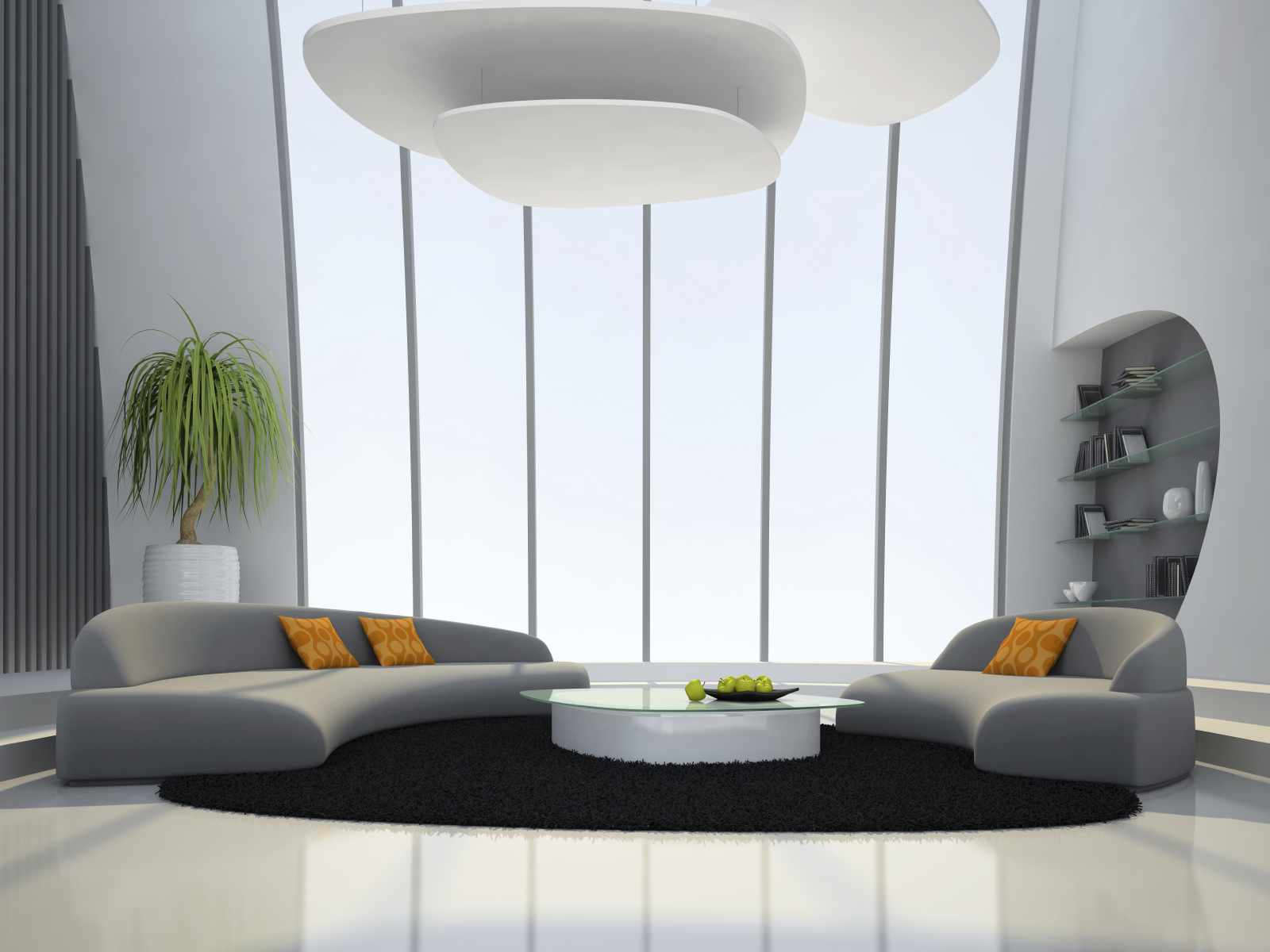Interior of the round living-room 3D rendering