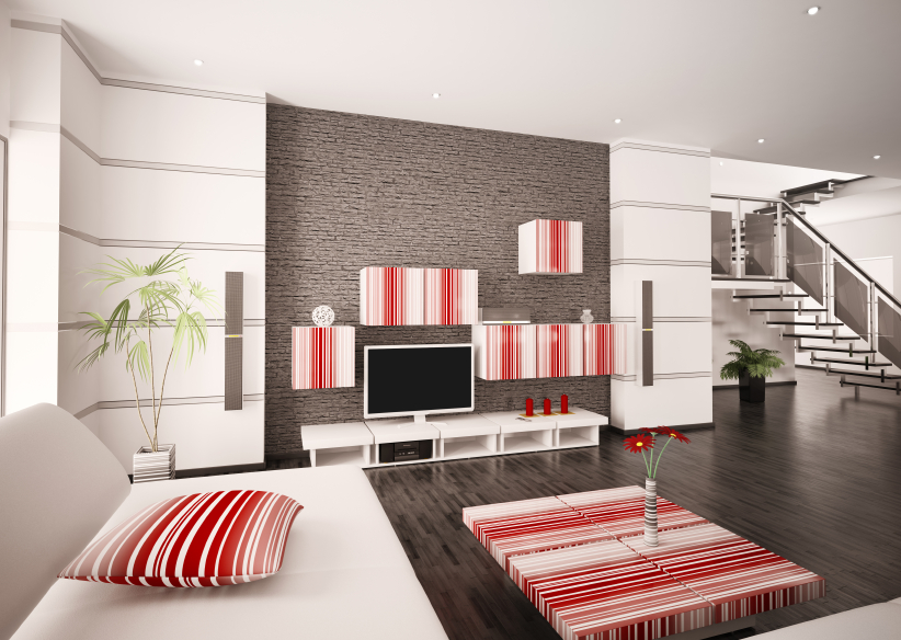 Modern living room with LCD interior 3d render