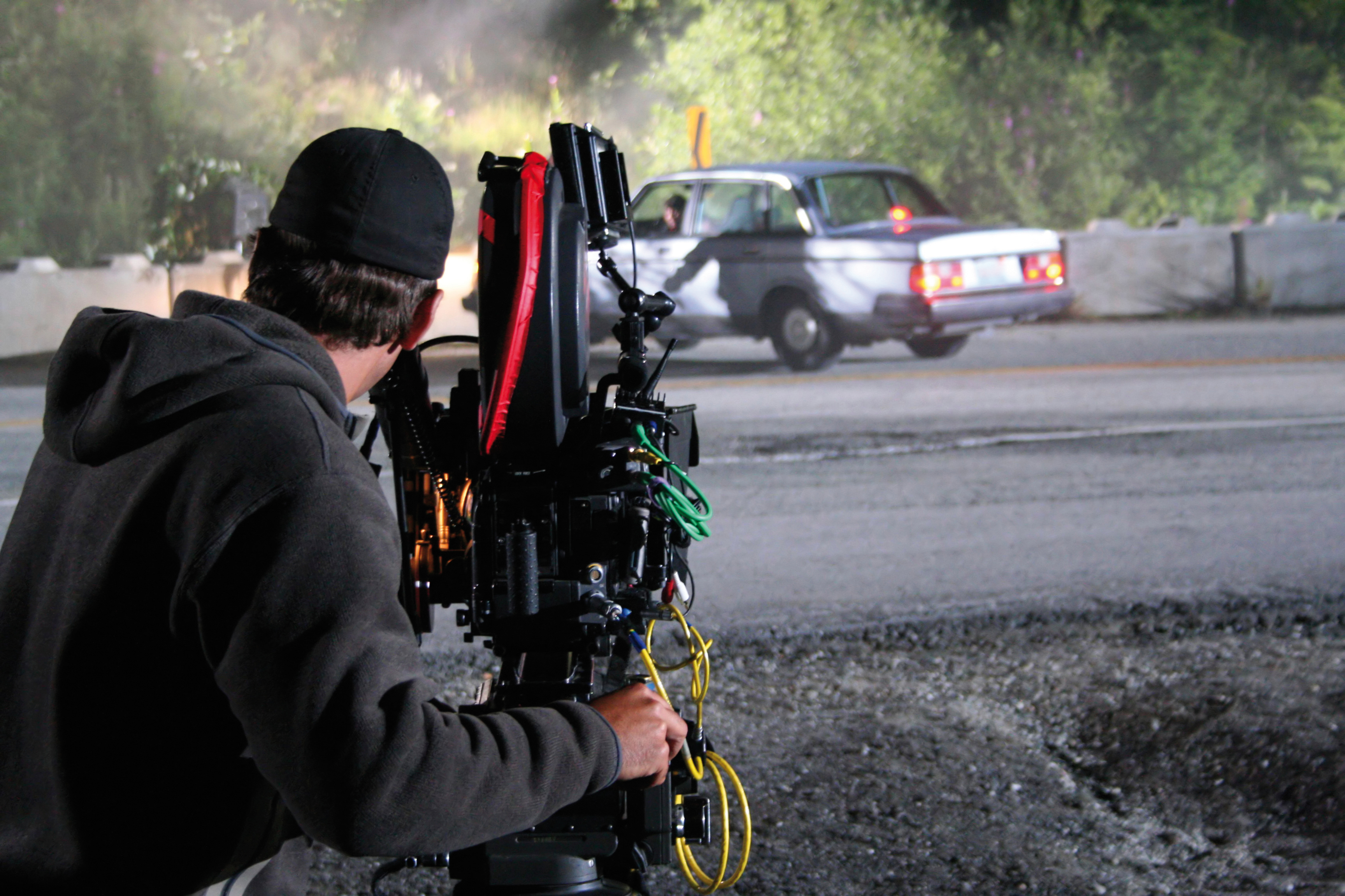 A cameraman captures a car crash during filming of a tv miniseries.