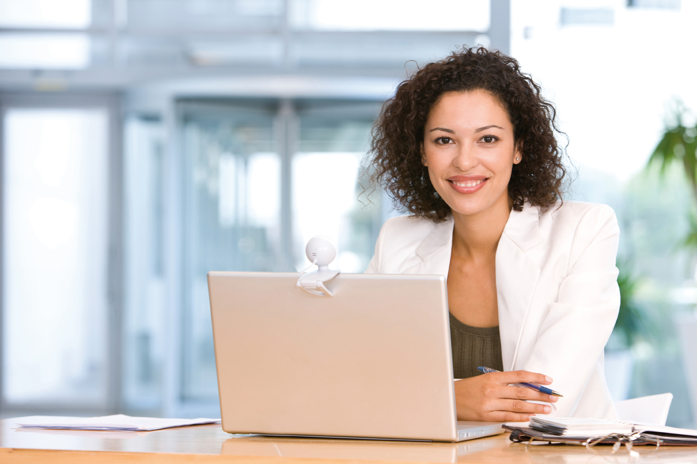 Attractive business woman working on laptop