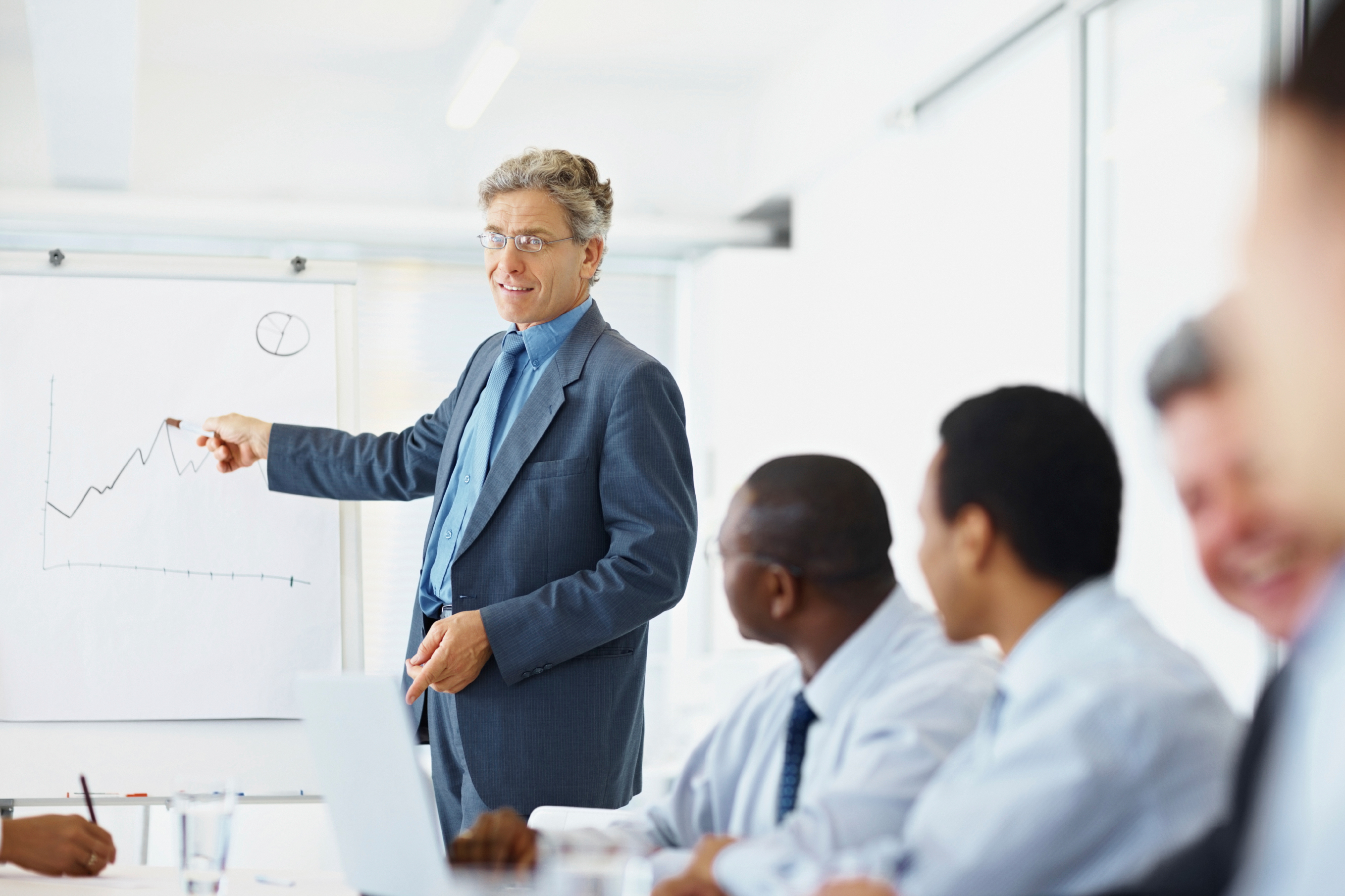 Successful elderly business man during a presentation to his team at the conference room