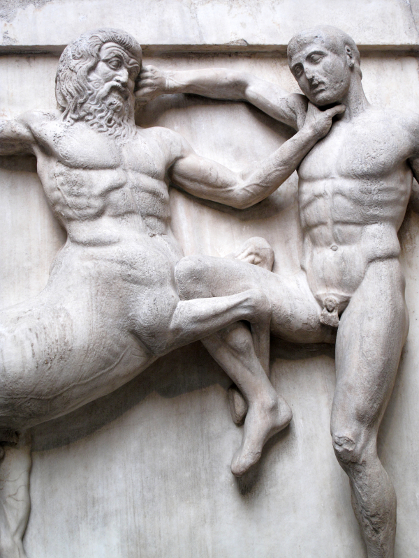 Archeologie, kunst, Metoop 31 van de Parthenon: Lapith en kentaur (Brits Museum), oudheid